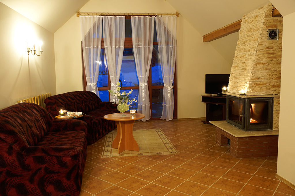| Przygotowując się do przyjęcia Gości zadbaliśmy o wszelkie wygody. Dlatego też obecnie jesteśmy w stanie oddać do Państwa dyspozycji nie tylko noclegi w bardzo atrakcyjnej cenie, ale również wyjątkowe pokoje zachowane w fantastycznej aranżacji, posiadające na wyposażeniu kominek oraz inne udogodnienia, które pozwolą cieszyć się chwilą. Nasi Goście mogą bez ograniczeń korzystać z bezprzewodowego dostępu do sieci Internet, pomieszczenia świetlicowo-jadalnianego oraz urzekającego ogrodu z przygotowanym kącikiem do grillowania. Także parking pozostawiamy do Państwa całodobowego użytkowania. |